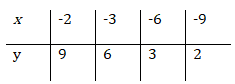 Составим таблицу точек для функции y=-18/x (учитывая, что x<-2)