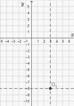 2) Сдвигаем оси координат в найденную точку (3;-8)(по первому способу), или на 3 вправо по оси Ох и вниз на 8 по оси Оу(по второму способу) как показано на рисунке: